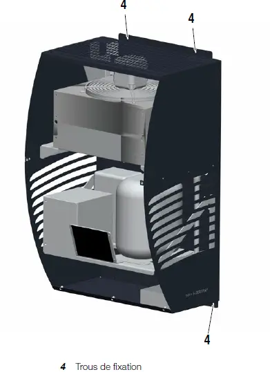- Fixez le monobloc à la chambre froide par les quatre trous de fixation (4) en utilisant des vis adéquates.