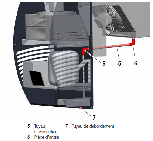 3. Raccordez le tuyau d’évacuation de l’eau de condensation au tuyau de débordement 7 .