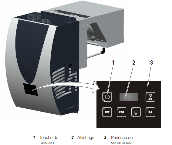 - Fonction marche/arrêt de l'éclairage du plafond de la chambre froide